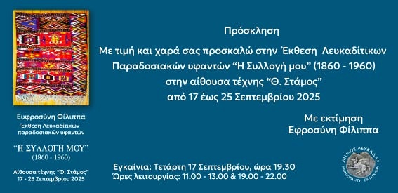 Έκθεση Λευκαδίτικων Παραδοσιακών Υφαντών »Η ΣΥΛΛΟΓΗ ΜΟΥ» (1860-1960) της Ευφροσύνης Φίλιππα